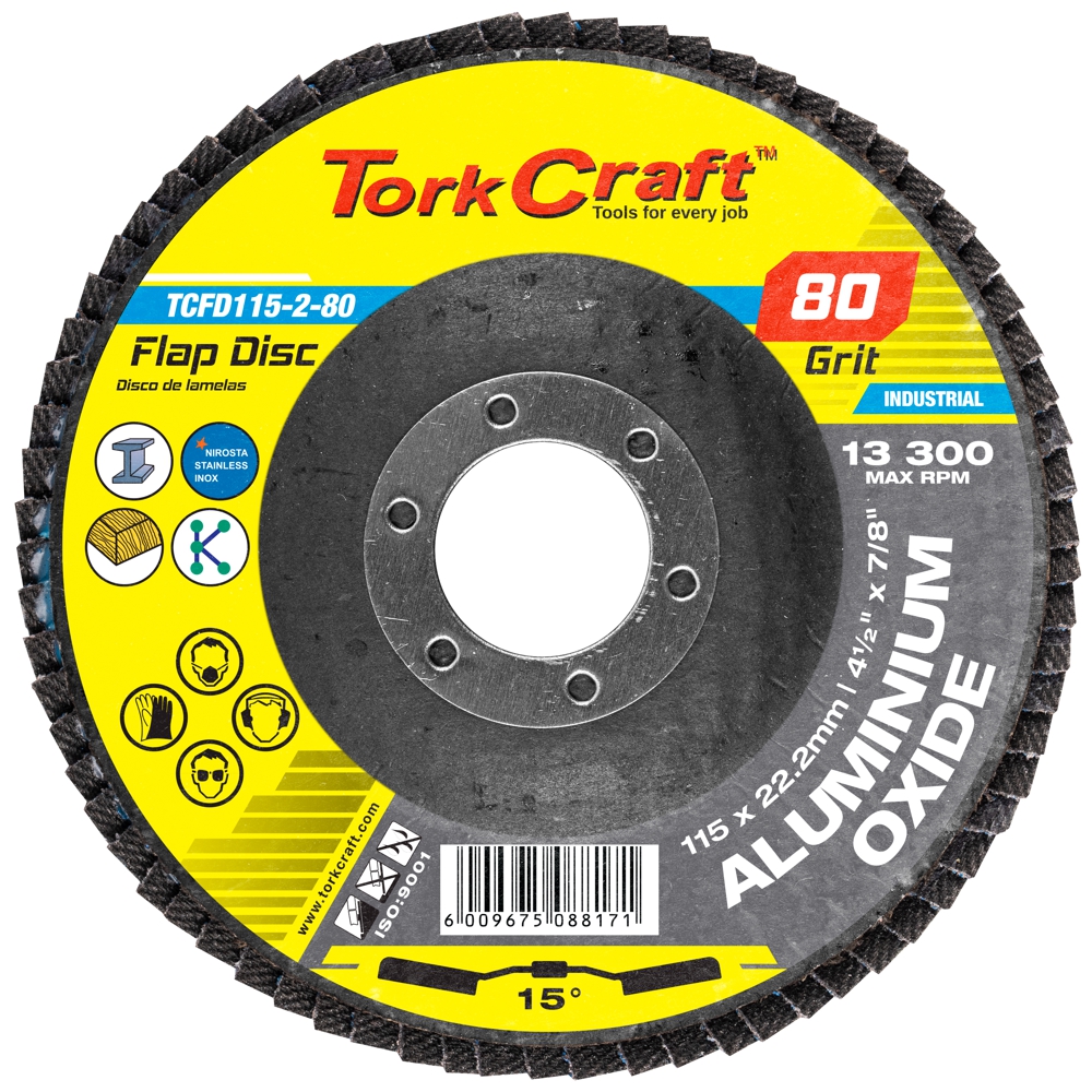 FLAP DISC 115MM 15 DEG.ANGLE 80GRIT A/O