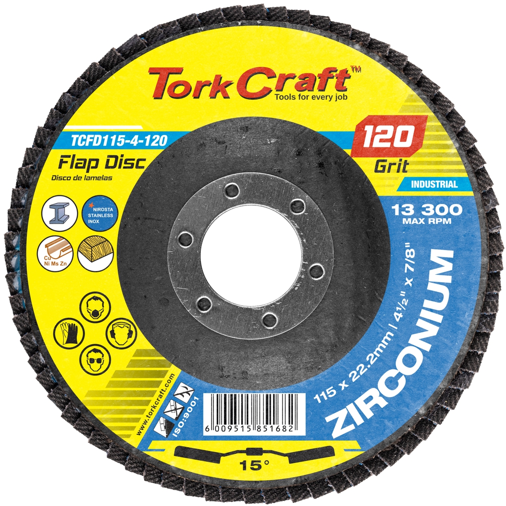 FLAP DISC ZIRCONIUM 115MM 120GRIT ANGLED