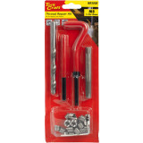 Tork Craft inserts are available in thread repair kits and sets for permanently repairing tapped holes which have been stripped or damaged due to wear, corrosion, and over-torqing. Kits are offered in various thread series. All our kits have a quantity of inserts, the proper size drill, high-speed steel Tork Craft tap, and installation tool.